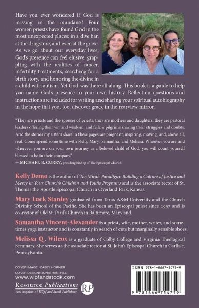 "These stories are poignant, inspiring, moving and, above all, real." —Michael Curry Have you ever wondered if God is missing in the mundane? Four women priests have found God in the most unexpected places: in a dive bar, at the drugstore, and even at the grave. As we go about our everyday lives, the divine can feel elusive: grappling with the realities of cancer, infertility treatments, searching for a birth story, and honoring the divine in a child with autism. Yet God was there all along. This book is a guide to help you name God’s presence in your own history. Reflection questions and instructions are included for writing and sharing your spiritual autobiography in the hope that you, too, discover grace in the rearview mirror.