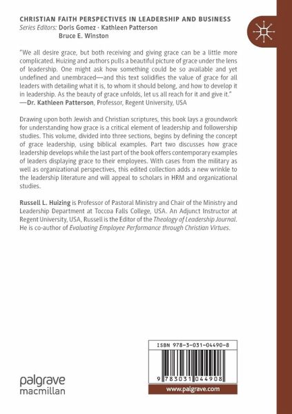 Section I: Foundations of Grace Leadership.- Chapter 1 Understanding Old and New Testament Grace.- Chapter 2 Graceful(l) Leadership: God's Initiative and a Leader's Response.- Chapter 3 Illustrations of Grace: John 13:1-17.- Chapter 4 Defining Grace.- Chapter 5 Examining Gracious Leadership in Context.- Section II: Forming Grace Leadership.- Chapter 6 Grace for Everyone.- Chapter 7 Creating a Gracious Place.- Chapter 8David and Growing in Grace.- Chapter 9 Grace-Centered Leadership.- Section III: Finding Grace Leadership.- Chapter 10 David and Military Grace.- Chapter 11 Development by Grace vs. Zero Defect Mentality.- Chapter 12 Dealing with Mistakes.- Chapter 13 Epilogue: What Shall We Do Now?.