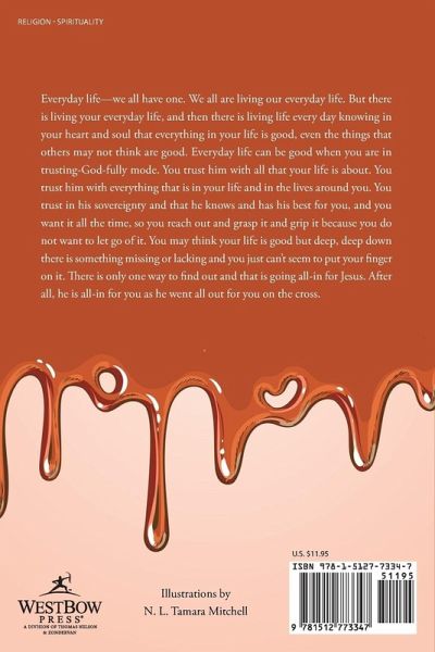 Everyday life-we all have one. We all are living our everyday life. But there is living your everyday life, and then there is living life every day knowing in your heart and soul that everything in your life is good, even the things that others may not think are good. Everyday life can be good when you are in trusting-God-fully mode. You trust him with all that your life is about. You trust him with everything that is in your life and in the lives around you. You trust in his sovereignty and that he knows and has his best for you, and you want it all the time, so you reach out and grasp it and grip it because you do not want to let go of it. You may think your life is good but deep, deep down there is something missing or lacking and you just can't seem to put your finger on it. There is only one way to find out and that is going all-in for Jesus. After all, he is all-in for you as he went all out for you on the cross.