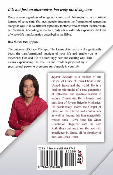 It is not just an alternative, but truly the living one. Every person regardless of religion, culture, and philosophy is on a spiritual journey of some sort. Yet, most people encounter the frustration of regressing along the way. It is no different especially for those who consider themselves to be Christians. According to research, only a few will truly experience the kind of whole-life transformation described in the Bible. Will this be true of you? The outcome of Grace Therapy: The Living Alternative will significantly boost the transformational quotient of your life and enable you to experience God and life in a startlingly new and exciting way. This means experiencing the true, unique freedom propelled by a supernatural power to overcome any obstacle in your life. Joyner Briceño is a teacher of the Gospel of Grace of Jesus Christ in the United States and the world. He is a leading role model of a new generation of influential and dynamic leaders in today's Christianity. He is founder and president of Joyner Briceño Ministries. He passionately shares the Gospel of Grace on the Internet and conferences as well as through his first masterfully written book - Live Free: The Grace Revolution. Together with his wife Ruth, they continue to run the race with excellence, by Grace, all for the glory of our Lord Jesus Christ.