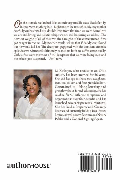 On the outside we looked like an ordinary middle class black family, but we were anything but. Right under the nose of daddy, my mother carefully orchestrated our double lives from the time we were born; lives we are still living and relationships we are still honoring as adults. The heaviest weight of all of this was the thought of the consequence if we got caught in the lie. My mother would tell us that if daddy ever found out he would kill her. The deception peppered with the domestic violence episodes we witnessed ultimately caused us both to suffer emotionally. Only a few were the wiser of the deception that we were living out, and the others just suspected. Until now.