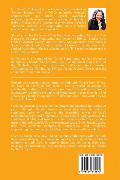 Embark on a transformative journey of faith with "Grace Upon Grace: 21 Days of Devotion for Teens." This powerful devotional is specifically crafted for teenagers, providing them with a meaningful opportunity to explore the depths of God's grace in their lives. It is 1 of 3 books as a family companion to "Sufficient Grace." Each day presents a new reflection, prayer, and practical application of grace. Through relatable stories, personal anecdotes, and relevant scriptures, teens will discover the incredible power of God's unconditional love and forgiveness.