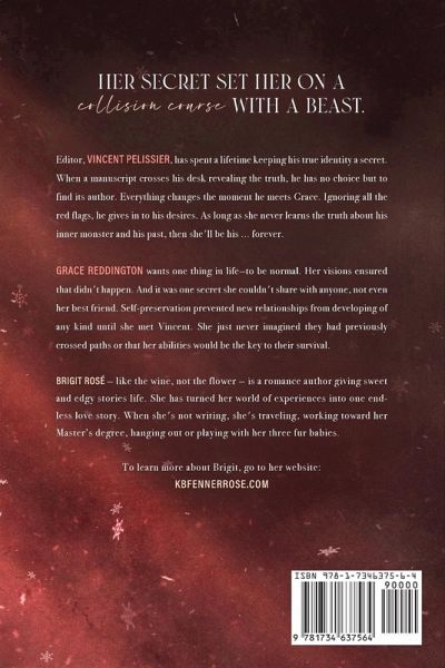 Her secret set her on a collision course with a beast. Editor, Vincent Pelissier, has spent a lifetime keeping his true identity a secret. When a manuscript crosses his desk revealing the truth, he has no choice but to find its author. Everything changes the moment he meets Grace. Ignoring all the red flags, he gives in to his desires. As long as she never learns the truth about his inner monster and past, she'll be his ... forever. Grace Reddington wants one thing in life-to be normal. Her visions ensured that didn't happen. And it was one secret she couldn't share with anyone, not even her best friend. Self-preservation prevented new relationships from developing of any kind until she met Vincent. She never imagined they had previously crossed paths or that her abilities would be the key to their survival.