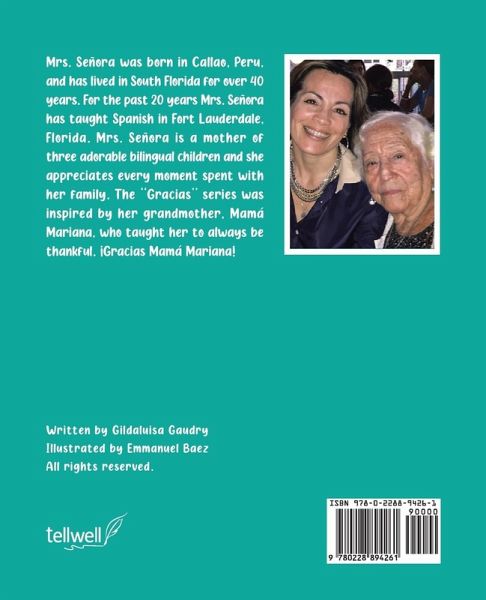 Mrs. Señora was born in Callao, Peru, and has lived in South Florida for over 40 years. For the past 20 years Mrs. Señora has taught Spanish in Fort Lauderdale, Florida. Mrs. Señora is a mother of three adorable bilingual children and she appreciates every moment with her family. The "Gracias" series was inspired by her grandmother, Mamá Mariana, who taught her to always be thankful. ¡Gracias Mamá Mariana!