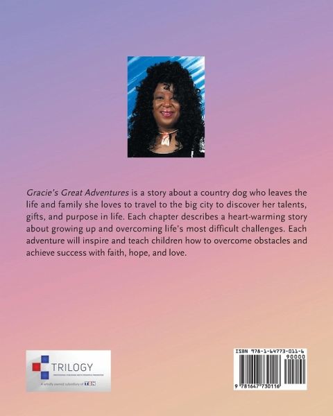 Gracie's Great Adventures is a story about a country dog who leaves the life and family she loves to travel to the big city to discover her talents, gifts, and purpose in life. Each chapter describes a heart-warming story about growing up and overcoming life's most difficult challenges. Each adventure will inspire and teach children how to overcome obstacles and achieve success with faith, hope, and love.