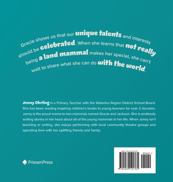 Gracie shows us that our unique talents and interests should be celebrated. When she learns that not really being a land mammal makes her special, she can't wait to share what she can do with the world.
