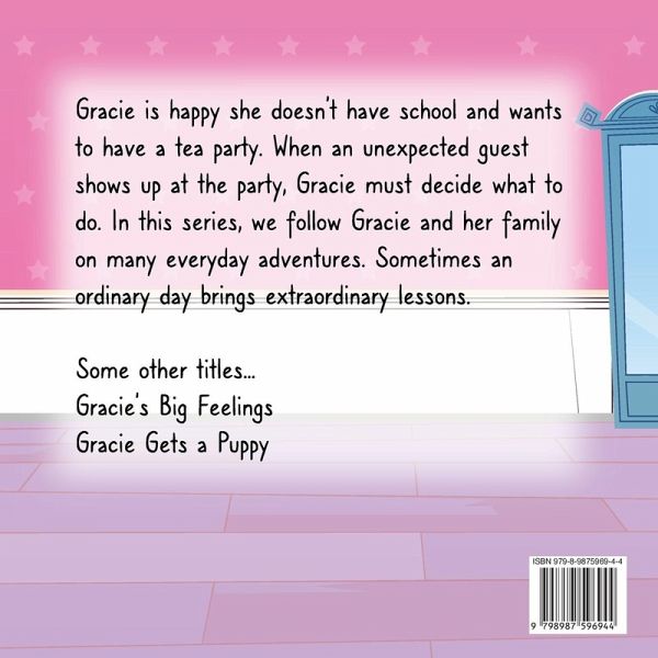 Gracie is happy she doesn't have school and wants to have a tea party. When an unexpected guest shows up at the party, Gracie must decide what to do. In this series, we follow Gracie and her family on many everyday adventures. Sometimes an ordinary day brings extraordinary lessons.