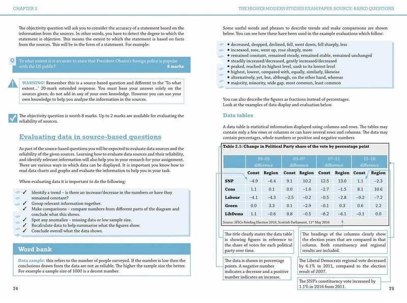 Exam Board: SQALevel: HigherSubject: Modern StudiesFirst Teaching: 2014, First Exam: 2015 This book is the essential guide to exam skills. It includes detailed advice on how to approach and answer the different types of question you will find in the exam and has been written by an experienced teacher and exam expert.