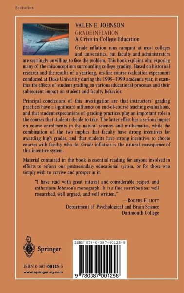 From the reviews: "GRADE INFLATION is an important book. Johnson does an excellent job of making the sophisticated statistical results accessible and understandable. It should be read by every faculty member who serves on a personnel committee, as well as by all academic administrators." (THE IRASCIBLE PROFESSOR, 2003) "GRADE INFLATION is a tour de force...his book is a major contribution to the growing literature on this important subject...[it] is essential reading for everyone interested in the integrity of both academic standards and assessment of student learning. Surely its definitive treatment of grade inflation will be well received by the academy and its constituencies and will foster long-needed reform." (Brian Manhire, Ohio University) "...This is a wonderful book. The reviewer would strongly recommend this book to anyone who teaches on the college level, and more importantly to faculty senates who traditionally retain the authority to make change in grading policies." (COLLEGE AND UNIVERSITY JOURNAL, Winter 2004) "This is a very thorough analysis of the ways in which variability in grading practice-across institutions, faculties/departments and individual courses-have consequences for the popularity of student choice of options, in student evaluations of teaching (SETs) and in a general degradation of academic standards." (Short Book Reviews of the International Statistical Institute, April 2004) "Grade Inflation - A Crisis in College Education by Valen E. Johnson is, in the opinion of the Irascible Professor, an outstanding contribution to the debate about the effects of ever rising grades in colleges and universities across the United States. ... Grade Inflation is an important book. Johnson does an excellent job of making the sophisticated statistical results accessible and understandable. It should be read by every faculty member who serves on a personal committee, as well as by all academic administrators." (Dr. Mark H. Shapiro, Irascibleprofessor.com, June, 2003)