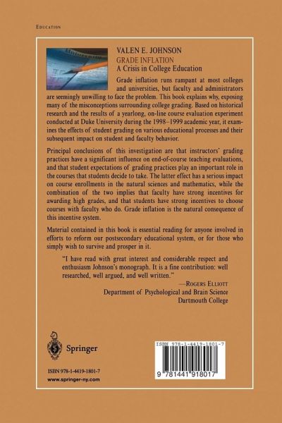 From the reviews: THE IRASCIBLE PROFESSOR "GRADE INFLATION is an important book. Johnson does an excellent job of making the sophisticated statistical results accessible and understandable. It should be read by every faculty member who serves on a personnel committee, as well as by all academic administrators."