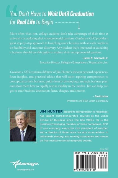 Do you think about how you can make money while you're still in school or wonder if you'll be able to find a job in your field when you graduate? If you do, now's the time to consider becoming an entrepreneur. Collegiate entrepreneurship provides you access to entrepreneurial courses, mentors, funding competitions, and investment opportunities available only to college students - so, don't wait until after you graduate - become CEO of your own company today! In Graduate a CEO, James H. Hunter III walks you through the process of building your own business through his own experience as a successful business owner, along with first-hand stories from his entrepreneurial students at the University of Wisconsin - Milwaukee. From discovering and testing your business idea, determining who your customers are and how to sell to them to gaining the confidence of investors and mastering your numbers, Jim is with you every step of the way.
