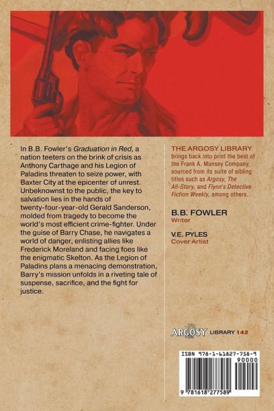 In B.B. Fowler's Graduation in Red, a nation teeters on the brink of crisis as Anthony Carthage and his Legion of Paladins threaten to seize power, with Baxter City at the epicenter of unrest. Unbeknownst to the public, the key to salvation lies in the hands of twenty-four-year-old Gerald Sanderson, molded from tragedy to become the world's most efficient crime-fighter. Under the guise of Barry Chase, he navigates a world of danger, enlisting allies like Frederick Moreland and facing foes like the enigmatic Skelton. As the Legion of Paladins plans a menacing demonstration, Barry's mission unfolds in a riveting tale of suspense, sacrifice, and the fight for justice.
