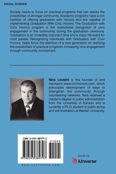 Society needs to focus on practical programs that can realize the possibilities of stronger community. Academic programs have a rich tradition of offering graduation with Honors and are capable of implementing Graduation With Civic Honors. The Graduation with Civic Honors program is the institutional recognition of civic engagement in the community during the graduation ceremony. Graduation is an incredibly important time and a major life event for most people. Recognizing individuals with Graduation with Civic Honors, helps focus the attention of a new generation on realizing the possibilities of practical programs increasing civic engagement through community involvement.
