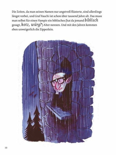 Ein uralter Vampir ohne Gebiss? Das klingt nach einem Albtraum - und genau das ist es für Graf Fauchi! Ohne seine Zähne ist der uralte Untote komplett aufgeschmissen, denn ohne sie kann er kein Blut mehr saugen. Gemeinsam mit der unerschrockenen Werwölfin Ylva begibt sich der Graf auf eine abenteuerliche Suche nach seinen Hauern quer durch Transsylvanien. Transsylvanien aus der Sicht von Heinz Strunk - Grusel und skurriler Humor in fantastischen Welte mit Elfen, Werwölfen, gigantischen Kraken, Frankensteins und anderen Monstern. Faszinierende, düstere und detailreiche Illustrationen von André Breinbauer, der die GEschichte kongenial in Szene gesetzt hat. Dieses Bilderbuch ist für mutige Vampirfreunde allen Alters, die Lust auf eine schräge Mischung aus Komik und Horror haben, ein großes Lesevergnügen.