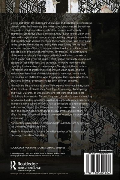 Graffiti and street art images are ubiquitous, and they enjoy a very special place in collective imaginary due to their ambiguous nature. Sometimes enigmatic in meaning, often stylistically crude and aesthetically aggressive, yet always visually arresting, they fill our field of vision with texts and images that no one can escape. As they take place on surfaces and travel through various channels, they provide viewers an entry point to the subtext of the cities we live in, while questioning how we read, write and represent them. This book is structured around these three distinct, albeit by definition interwoven, key frames. The contributors of this volume critically investigate underexplored urban contexts in which graffiti and street art appear, shed light on previously unexamined aspects of these practices, and introduce innovative methodologies regarding the treatment of these images. Throughout, the focus is on the relationship of graffiti and street art with urban space, and the various manifestations of these idiosyncratic meetings. In this book, the emphasis is shifted from what the physical texts say to what these practices and their produced images do in different contexts. All chapters are original and come from experts in various fields, such as Architecture, Urban Studies, Sociology, Criminology, Anthropology and Visual Cultures, as well as scholars that transcend traditional disciplinary frameworks. This exciting new collection is essential reading for advanced undergraduates as well as postgraduates and academics interested in the subject matter. It is also accessible to a non-academic audience, such as art practitioners and policymakers alike, or anyone keen on deepening their knowledge on how graffiti and street art affect the ways urban environments are experienced, understood and envisioned.