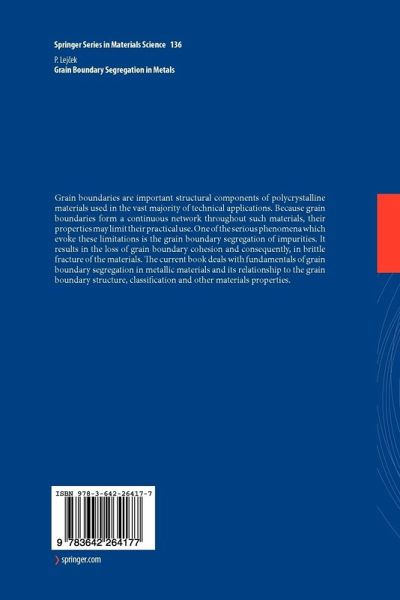 Grain boundaries are important structural components of polycrystalline materials used in the vast majority of technical applications. Because grain boundaries form a continuous network throughout such materials, their properties may limit their practical use. One of the serious phenomena which evoke these limitations is the grain boundary segregation of impurities. It results in the loss of grain boundary cohesion and consequently, in brittle fracture of the materials. The current book deals with fundamentals of grain boundary segregation in metallic materials and its relationship to the grain boundary structure, classification and other materials properties.