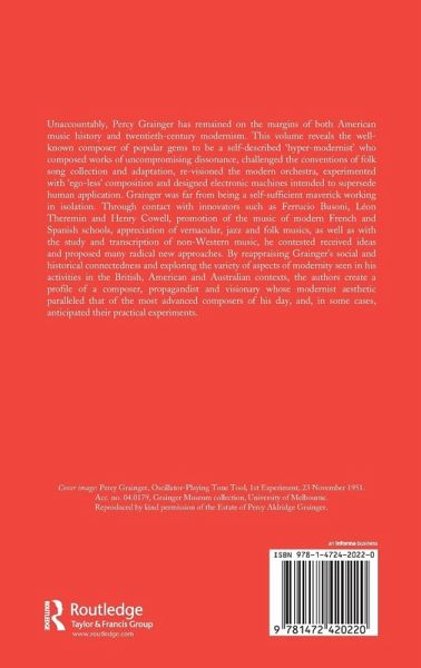 Unaccountably, Percy Grainger has remained on the margins of both American music history and twentieth-century modernism. This volume reveals the well-known composer of popular gems to be a self-described 'hyper-modernist' who composed works of uncompromising dissonance, challenged the conventions of folk song collection and adaptation, re-visioned the modern orchestra, experimented with 'ego-less' composition and designed electronic machines intended to supersede human application. Grainger was far from being a self-sufficient maverick working in isolation. Through contact with innovators such as Ferrucio Busoni, Léon Theremin and Henry Cowell; promotion of the music of modern French and Spanish schools; appreciation of vernacular, jazz and folk musics; as well as with the study and transcription of non-Western music; he contested received ideas and proposed many radical new approaches. By reappraising Grainger's social and historical connectedness and exploring the variety of aspects of modernity seen in his activities in the British, American and Australian contexts, the authors create a profile of a composer, propagandist and visionary whose modernist aesthetic paralleled that of the most advanced composers of his day, and, in some cases, anticipated their practical experiments.