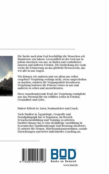 Die Suche nach dem Gral beschäftigt die Menschen seit hunderten von Jahren. Letztendlich ist der Gral nur in jedem einzelnen von uns zu finden und symbolisiert inneren und äußeren Frieden. Die Entdeckung des Grals weckt die Erinnerung an das göttliche Bewusstsein, das wir alle in uns tragen. Wie können wir anderen und vor allem uns selbst vergeben? Vergebung verlangt nicht, etwas ungeschehen zu machen, sondern die Vergangenheit loszulassen. Vergebung bedeutet die Präsenz Gottes in uns und anderen zu sehen und anzuerkennen. Diese transformierende Kraft der Vergebung ermöglicht uns das Potential für ein erfülltes Leben in Frieden, Gesundheit und Liebe.