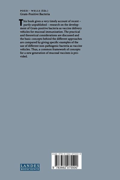 This book gives a very timely account of recent - partly unpublished - research on the development of gram-positive bacteria as vaccine delivery vehicles for mucosal immunization. The practical and theoretical considerations are discussed and the basic concepts behind the different approaches are compared by giving specific examples of the use of different non-pathogenic bacteria as vaccine vehicles. Thus, a common framework of concepts for a new generation of mucosal vaccines is provided.