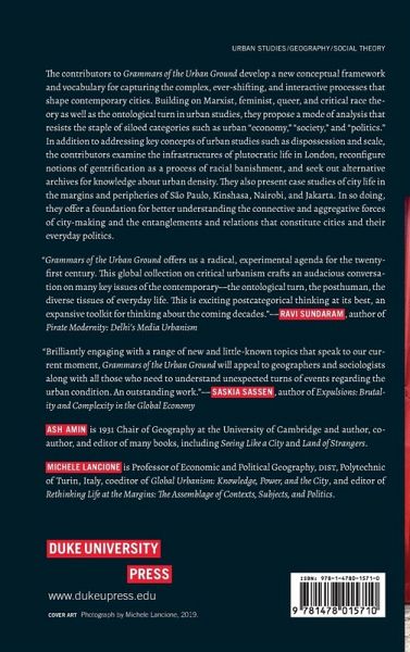 The contributors to Grammars of the Urban Ground develop a new conceptual framework and vocabulary for capturing the complex, ever-shifting, and interactive processes that shape contemporary cities.