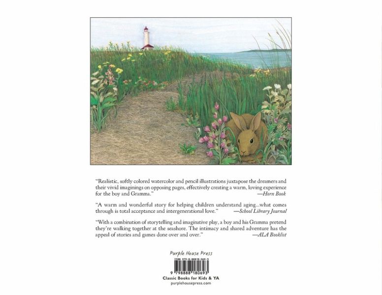 Gramma sits in the sun parlor in her wheelchair. When Donnie visits, they have a ritual. "Where shall we walk today?" Gramma asks. Donnie chooses one of their favorite paths. Today it is along the seashore. He settles down on a hassock next to the wheelchair, and off they go on their imaginary walk. Gramma and Donnie enjoy their walk every step of the way, and so will the young listeners who join them. Visit Anna Grossnickle Hines online at www.aghines.com. Donnie's Gramma gets around in a wheelchair, but through the magic of imagination, the two of them walk to the beach, listen, feel, and smell the sea; identify prints in the sand; and admire the wildlife. No big deal is made of Gramma's condition, nor is the reason for it given; what comes through is total acceptance and intergenerational love. A warm and wonderful story for helping children understand aging... -School Library Journal, 1994 Donnie and his grandmother, who is in a wheelchair, take an imaginary walk on the beach. Realistic, softly colored watercolor and pencil illustrations juxtapose the dreamers and their vivid imaginings on opposing pages, effectively creating a warm, loving experience for the boy and Gramma. -Horn Book, 1994