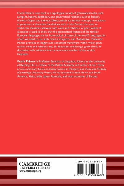 Frank Palmer's new book is a typological survey of grammatical roles, such as Agent and Patient, and grammatical relations, such as Subject and Direct Object. A great wealth of examples is used to show that the grammatical systems of the familiar European languages are far from typical of many of the world's languages.