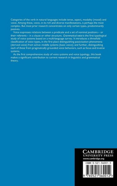 As the first comprehensive study of voice systems and voice typology, this book makes a significant contribution to current research in linguistics and grammatical theory.