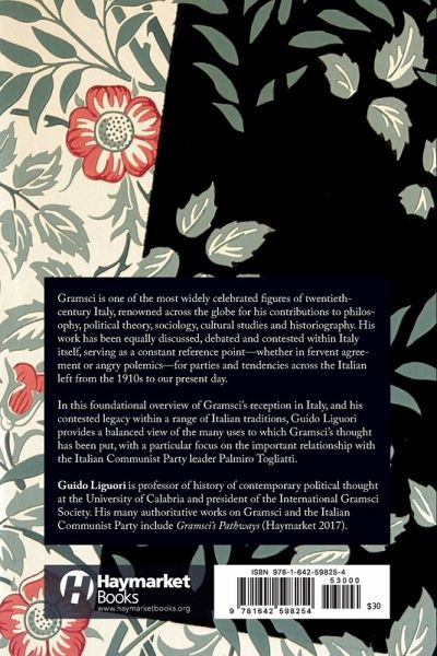 Antonio Gramsci's work has been considered of paramount importance across the globe, but what of his influence in his native Italy? Gramsci is one of the most widely celebrated figures of twentieth-century Italy, renowned across the globe for his contributions to philosophy, political theory, sociology, cultural studies and historiography. His work has been equally discussed, debated and contested within Italy itself, serving as a constant reference point-whether in fervent agreement or angry polemics-for parties and tendencies across the Italian left from the 1910s down to our present day. In this foundational overview of Gramsci's reception in Italy, and his contest legacy within a range of Italian traditions, Guido Liguori provides a balanced view of the many uses to which Gramsci's thought has been put, with a particular focus on the important relationship with the Italian Communist Party leader, Palmiro Togliatti.