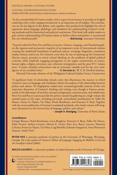 This book provides the first English translations of pivotal essays and debates on the role of language politics, linguistics, and translation in Antonio Gramsci's influential cultural theory. It also includes new works from leading and up-and-coming anglophone scholars to create a vital resource for a wide variety of readers interested in Gramsci across many disciplines including cultural studies, critical political economy, social and political theory, literature, sociology, post-colonialism, and philosophy.
