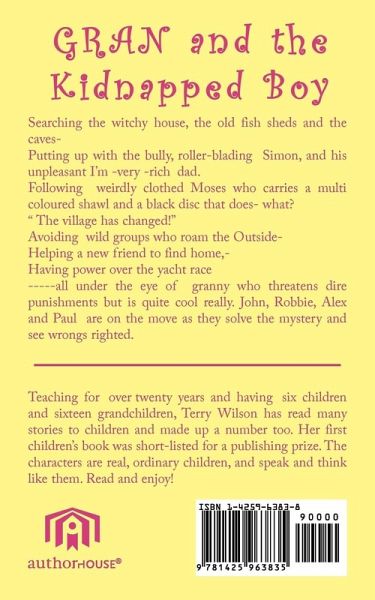 Searching the witchy house, the old fish sheds and the caves- Putting up with the bully, roller-blading Simon, and his unpleasant I'm -very -rich dad. Following weirdly clothed Moses who carries a multi coloured shawl and a black disc that does- what? " The village has changed!" Avoiding wild groups who roam the Outside- Helping a new friend to find home,- Having power over the yacht race -----all under the eye of granny who threatens dire punishments but is quite cool really. John, Robbie, Alex and Paul are on the move as they solve the mystery and see wrongs righted.