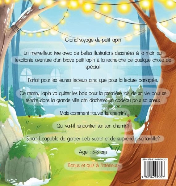 Un livre merveilleux avec de belles illustrations dessinées à la main sur l'excitante aventure d'un petit lapin. Parfait pour les jeunes lecteurs ainsi que pour la lecture partagée. Achetez-le maintenant !