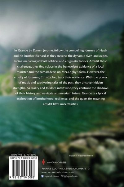 In Grande by Darren Jerome, follow the compelling journey of Hugh and his brother Richard as ¿they traverse the dynamic river landscapes, facing menacing redcoat soldiers and enigmatic faeries. ¿Amidst these challenges, they find solace in the benevolent guidance of a local minister and the ¿camaraderie on Mrs. Digby's farm. However, the cruelty of foreman, Christopher, tests their ¿resilience. With the power of music and captivating tales of the past, they uncover hidden strengths. ¿As reality and folklore intertwine, they confront the shadows of their history and navigate an ¿uncertain future. Grande is a lyrical exploration of brotherhood, resilience, and the quest for ¿meaning amidst life's uncertainties.¿