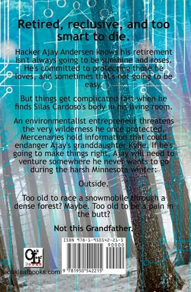 Retired, reclusive, and too smart to die. Hacker Ajay Andersen knows his retirement isn't always going to be sunshine and roses. He's committed to protecting those he loves, and sometimes that's not going to be easy. But things get complicated fast when he finds Silas Cardoso's body in his living room. An environmentalist entrepreneur threatens the very wilderness he once protected. Mercenaries hold information that could endanger Ajay's granddaughter Kylie. If he's going to make things right, Ajay will need to venture somewhere he never wants to go during the harsh Minnesota winter: Outside. Too old to race a snowmobile through a dense forest? Maybe. Too old to be a pain in the butt? Not this Grandfather.