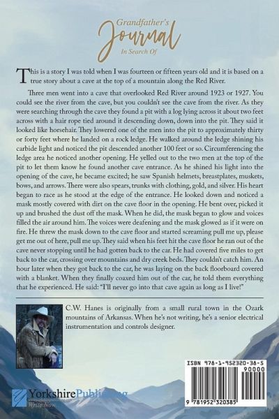 This is a story I was told when I was fourteen or fifteen years old and it is based on a true story about a cave at the top of a mountain along the Red River. Three men went into a cave that overlooked Red River around 1923 or 1927. You could see the river from the cave, but you couldn't see the cave from the river. As they were searching through the cave they found a pit with a log lying across it about two feet across with a hair rope tied around it descending down, down into the pit. They said it looked like horsehair. They lowered one of the men into the pit to approximately thirty or forty feet where he landed on a rock ledge. He walked around the ledge shining his carbide light and noticed the pit descended another 100 feet or so. Circumferencing the ledge area he noticed another opening. He yelled out to the two men at the top of the pit to let them know he found another cave entrance. As he shined his light into the opening of the cave, he became excited; he saw Spanish helmets, breastplates, muskets, bows, and arrows. There were also spears, trunks with clothing, gold, and silver. His heart began to race as he stood at the edge of the entrance. He looked down and noticed a mask mostly covered with dirt on the cave floor in the opening. He bent over, picked it up and brushed the dust off the mask. When he did, the mask began to glow and voices filled the air around him. The voices were deafening and the mask glowed as if it were on fire. He threw the mask down to the cave floor and started screaming pull me up, please get me out of here, pull me up. They said when his feet hit the cave floor he ran out of the cave never stopping until he had gotten back to the car. He had covered five miles to get back to the car, crossing over mountains and dry creek beds. They couldn't catch him. An hour later when they got back to the car, he was lying on the back floorboard covered with a blanket. When they finally coaxed him out of the car, he told them everything that he experienced. He said: "I'll never go into that cave again as long as I live!"