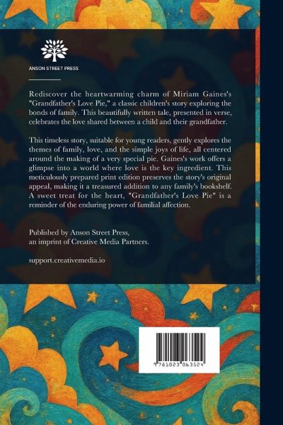 Rediscover the heartwarming charm of Miriam Gaines's "Grandfather's Love Pie," a classic children's story exploring the bonds of family. This beautifully written tale, presented in verse, celebrates the love shared between a child and their grandfather. This timeless story, suitable for young readers, gently explores the themes of family, love, and the simple joys of life, all centered around the making of a very special pie. Gaines's work offers a glimpse into a world where love is the key ingredient. This meticulously prepared print edition preserves the story's original appeal, making it a treasured addition to any family's bookshelf. A sweet treat for the heart, "Grandfather's Love Pie" is a reminder of the enduring power of familial affection. This work has been selected by scholars as being culturally important, and is part of the knowledge base of civilization as we know it. This work is in the public domain in the United States of America, and possibly other nations. Within the United States, you may freely copy and distribute this work, as no entity (individual or corporate) has a copyright on the body of the work. Scholars believe, and we concur, that this work is important enough to be preserved, reproduced, and made generally available to the public. We appreciate your support of the preservation process, and thank you for being an important part of keeping this knowledge alive and relevant.