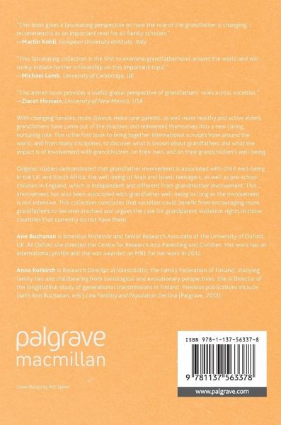 "This volume is an excellent selection of contributions focused on the almost totally unrecognised role of the grandfather that has long been in the shadow of grandmothers. The different research contained within this volume highlights the important impact of grandfathers on grandchildren ... . it is a relevant and essential contribution not only to social scientists but to anyone who wishes to understand the important roles of the grandfathers and their impact on the new generations." (Marta Ortega Gaspar, Journal of Population Ageing, Vol. 10, 2017)