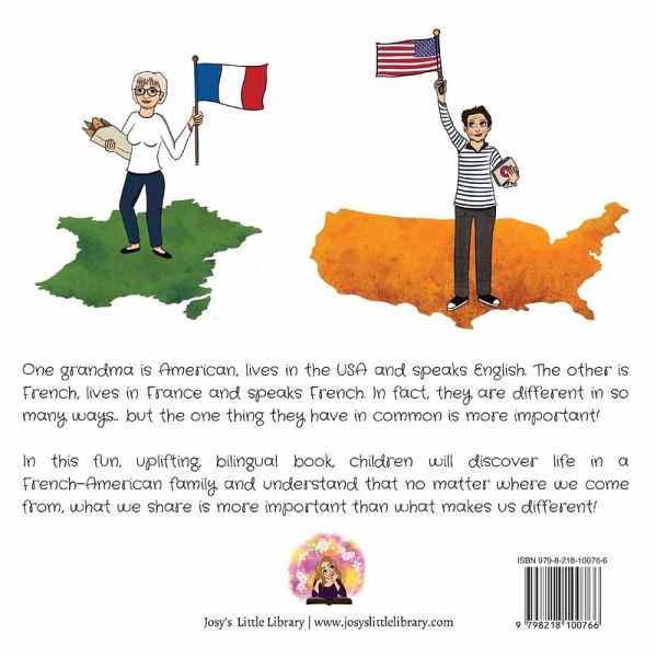 One grandma is American, lives in the USA and speaks English. The other is French, lives in France and speaks French. In fact, they are different in so many ways... but what they have in common is more important! In this fun, uplifting, bilingual book, children will discover life in a French-American family and understand that no matter where we come from, what we share is more important than what makes us different.