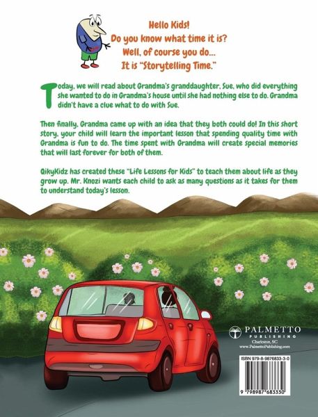 Hello Kids! Do you know what time it is? Well, of course you do... It is "Storytelling Time." Today, we will read about grandma's granddaughter sue who did everything she wanted to do in grandma's house until she had nothing else to do. Grandma didn't have a clue what to do with Sue. Then finally, grandma game up with an idea that they both can do! In this short story your child will learn that spending quality time with grandma is fun to do. The time spent with grandma will create special memories that will last forever for both of you. QikyKidz has created these "Life Lessons for kids" to…mehr