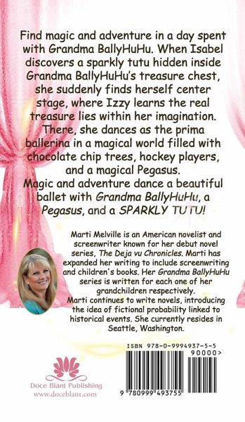 Find magic and adventure in a day spent with Grandma BallyHuHu. When Isabel discovers a sparkly tutu hidden inside Grandma BallyHuHu’s treasure chest, she suddenly finds herself center stage, where Izzy learns the real treasure lies within her imagination. There, she dances as the prima ballerina in a magical world filled with chocolate chip trees, hockey players, and a magical Pegasus.