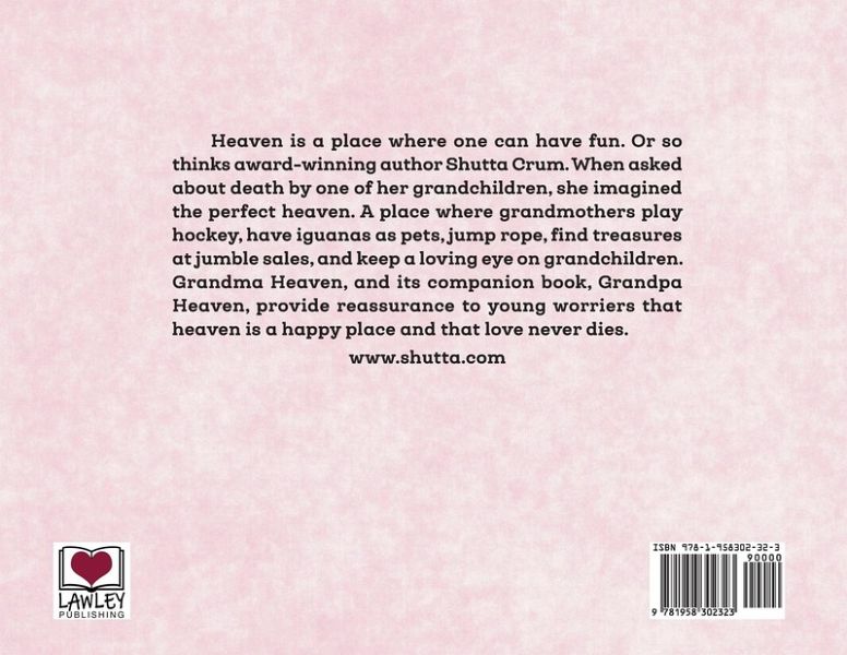 Heaven is a place where one can have fun. Or so thinks award-winning author Shutta Crum. When asked about death by one of her grandchildren, she imagined the perfect heaven. A place where grandmothers play hockey, have iguanas as pets, jump rope, find treasures at jumble sales, and keep a loving eye on grandchildren. Grandma Heaven, and its companion book, Grandpa Heaven, provide reassurance to young worriers that heaven is a happy place and that love never dies.