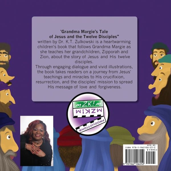 "Grandma Margie's Tale of Jesus and the Twelve Disciples" written by Dr. K.T. Zulkowski is a heartwarming children's book that follows Grandma Margie as she teaches her grandchildren, Zipporah and Zion, about the story of Jesus and His twelve disciples. Through engaging dialogue and vivid illustrations, the book takes readers on a journey from Jesus' teachings and miracles to His crucifixion, resurrection, and the disciples' mission to spread His message of love and forgiveness.