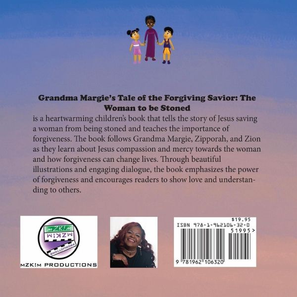 "Grandma Margie's Tale of the Forgiving Savior: The Woman to be Stoned" is a heartwarming children's book that tells the story of Jesus saving a woman from being stoned and teaches the importance of forgiveness. The book follows Grandma Margie, Zipporah, and Zion as they learn about Jesus' compassion and mercy towards the woman and how forgiveness can change lives. Through beautiful illustrations and engaging dialogue, the book emphasizes the power of forgiveness and encourages readers to show love and understanding to others.