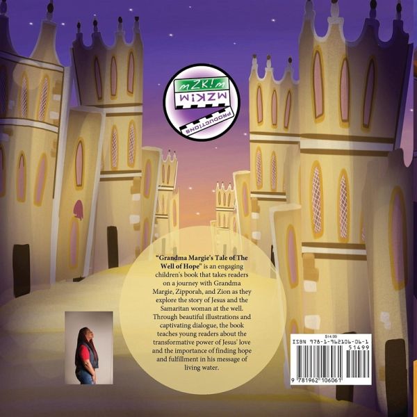 "Grandma Margie's Tale of The Well of Hope" is an engaging children's book that takes readers on a journey with Grandma Margie, Zipporah, and Zion as they explore the story of Jesus and the Samaritan woman at the well. Through beautiful illustrations and captivating dialogue, the book teaches young readers about the transformative power of Jesus' love and the importance of finding hope and fulfillment in his message of living water.