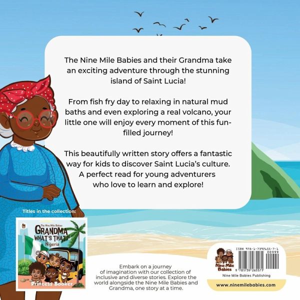 The Nine Mile Babies and their Grandma take an exciting adventure through the stunning island of Saint Lucia! From the delicious flavours of Fish Fry Day to the fun of relaxing in natural mud baths, and even exploring a real volcano, your little one will enjoy every moment of this fun-filled journey! This beautifully written story offers a fantastic way for kids to discover Saint Lucia's rich culture and incredible natural wonders, whether they're connecting with their heritage or exploring somewhere new for the first time. A perfect read for young adventurers who love to learn, explore, and feed their curiosity about the world around them! A must-have addition to every little explorer's bookshelf.