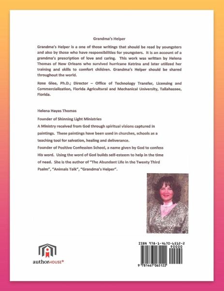 I was inspired by my grandson, Michael Thomas, Jr., to write "Grandma's Helper". I didn't realize that over the years I had forgotten so much. As I spent treasured moments caring for my grandchild, I would jot down little reminders as to what to do next in the course of the day of grandparenting. Then it occurred to me to compile the notes into a book to help other grandmas, grandpas, moms, and dads. Introducing a child to the world around him provides opportunity to bring out the physical as well as the spiritual side of his development. Early training and guidance of small children provide valuable lessons for grandparents. The main ingredients that we must possess are tender loving care and a reverence for God and His Word as we train our children in the way they should go. It is the purpose of this book to teach the fulfillment of that commission.