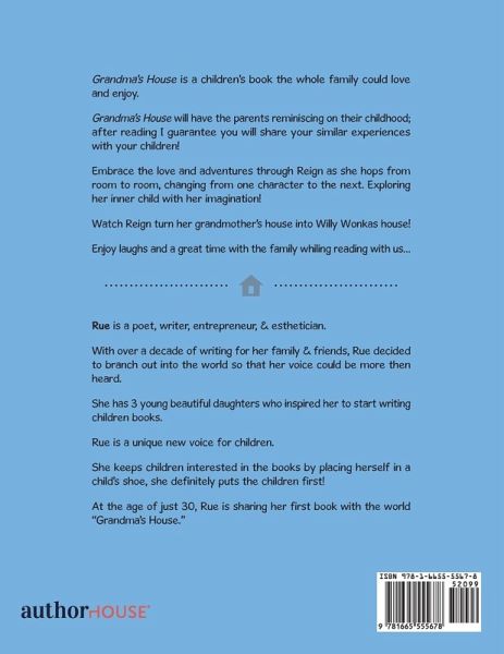 Grandma's House is a children's book the whole family could love and enjoy. Grandma's House will have the parents reminiscing on their childhood; after reading I guarantee you will share your similar experiences with your children! Embrace the love and adventures through Reign as she hops from room to room, changing from one character to the next. Exploring her inner child with her imagination! Watch Reign turn her grandmother's house into Willy Wonkas house! Enjoy laughs and a great time with the family whiling reading with us...