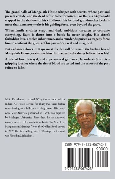 Rajiv has always found solace in the unwavering love of his grandmother, Leela-the matriarch of Mangalath House. Her guidance shapes his life, even beyond death, as she continues to steer him toward his destiny. However, within the grand ancestral home, secrets fester, ambitions clash, and dark conspiracies unfold. Rajiv, a young man with a troubled past, battles the scars of childhood trauma while facing the relentless schemes of his uncle, Chandran, a ruthless politician. When his beloved sister, Susheela, falls victim to a horrifying crime, Rajiv is determined to seek justice. Guided by Leela's spectral presence, he unravels the tangled web of lies, deceit, and murder that threaten his family's legacy. As the battle for truth intensifies, Rajiv must overcome betrayal, violence, and his own limitations to forge a new identity-one that will honor his grandmother's wisdom and redefine his place in the world. Will he embrace his destiny and become the man Leela always believed he could be? A gripping family saga infused with supernatural elements, The Legacy of Mangalath House is a riveting tale of love, resilience, and the enduring power of ancestral bonds. Perfect for readers who enjoy emotional dramas, haunting mysteries, and stories of triumph against all odds.