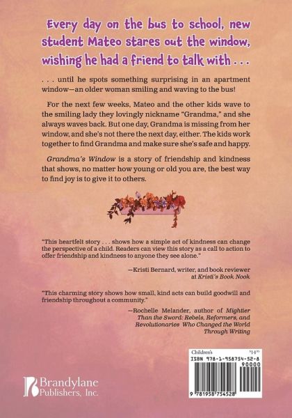 Every day on the bus to school, new student Mateo stares out the window, wishing he had a friend to talk to . . . until one morning, when he spots something surprising in an apartment window-an older woman is smiling and waving to the bus! For the next few weeks, Mateo and his classmates wave to the nice lady they lovingly nickname "Grandma," and she always waves back. But one day, Grandma is missing from her window, and she's not there the next day, either. Mateo and his classmates must work together to find Grandma and make sure she's safe and happy. Grandma's Window is a story of friendship and kindness that shows us that no matter how young or old you are, the best way to bring joy into your life is to give it to others.