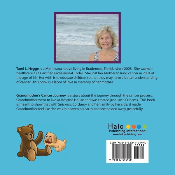 Grandmother's Cancer Journey is a story about the journey through the cancer process. Grandmother went to live at Hospice House and was treated just like a Princess. This book is meant to show that with Snickers, Corduroy and her family by her side, it made Grandmother feel like she was in heaven on earth and she passed away peacefully.
