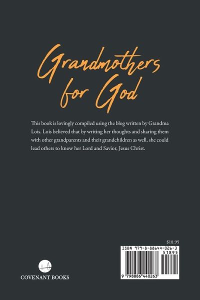 This book is lovingly compiled using the blog written by Grandma Lois. Lois believed that by writing her thoughts and sharing them with other grandparents and their grandchildren as well, she could lead others to know her Lord and Savior, Jesus Christ.